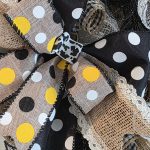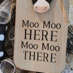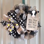 A charming cow wreath making it a delightful addition to any home. A mini wreath 13 inches around made out of black and brown mesh with a matching bow and spots of color. Can be hung up or placed on a shelf for a unique touch.