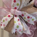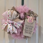 Adorable mini pig wreath design making it a delightful addition to your home and ready to hang on your wall. The size is 13 inches around. Made out of pink and brown burlap mesh with a matching bow and spots of color to pull it together.