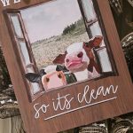 These cows are too cute. The one with its tongue out. Will make you smile or laugh when you look at the beautiful wreath. Made out of burlap and black mesh. With a beautiful bow. Will add a touch of whimsical to your decor.
